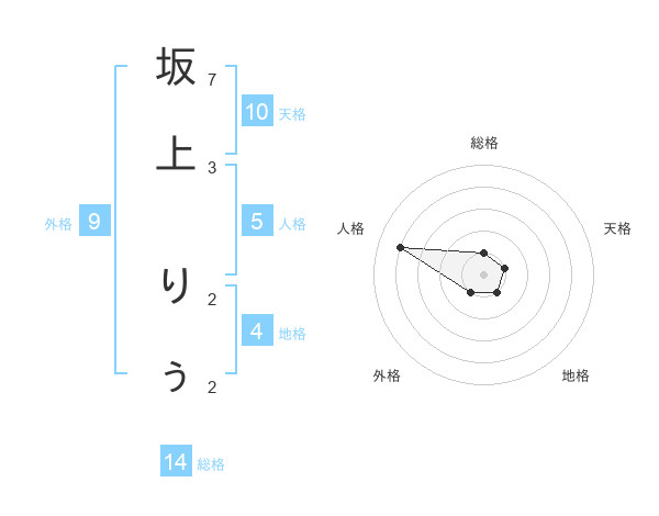 坂上 りぅさんを姓名の画数から五運を鑑定