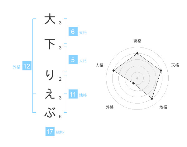大下 りえぶさんの総格は17画の4点!