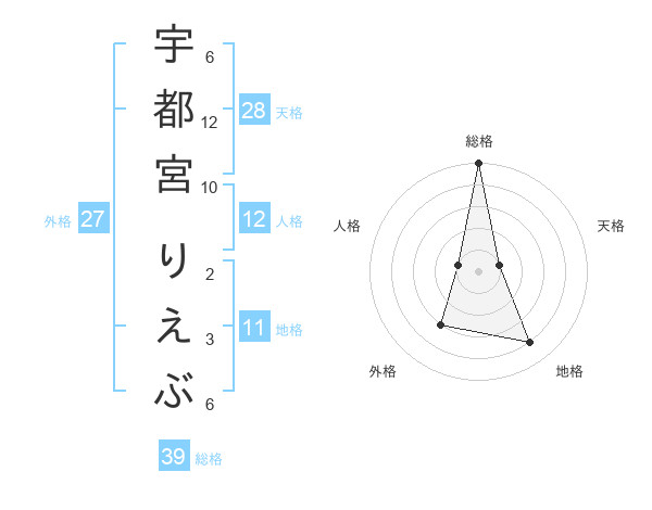 宇都宮 りえぶさんの総格は39画の5点!