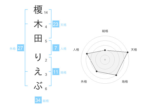 榎木田 りえぶさんを姓名の画数から五運を鑑定