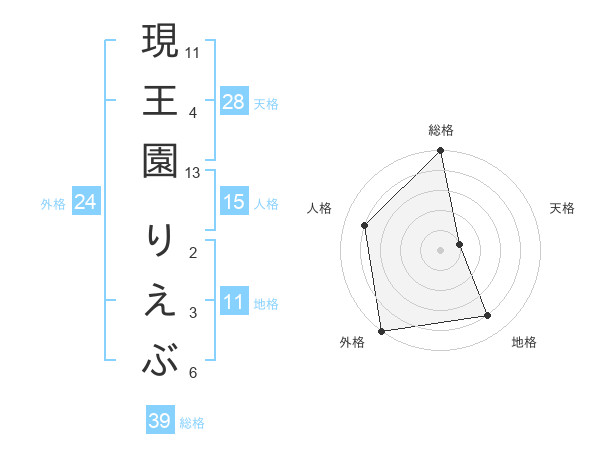 現王園 りえぶさんを姓名の画数から五運を鑑定