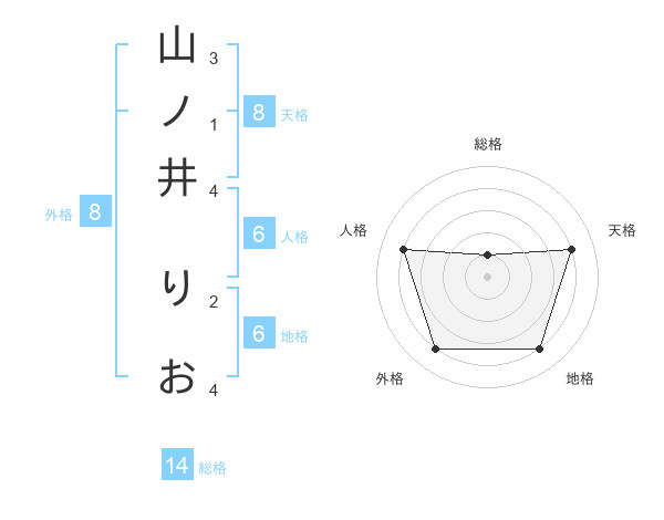 山ノ井 りおさんを姓名の画数から五運を鑑定