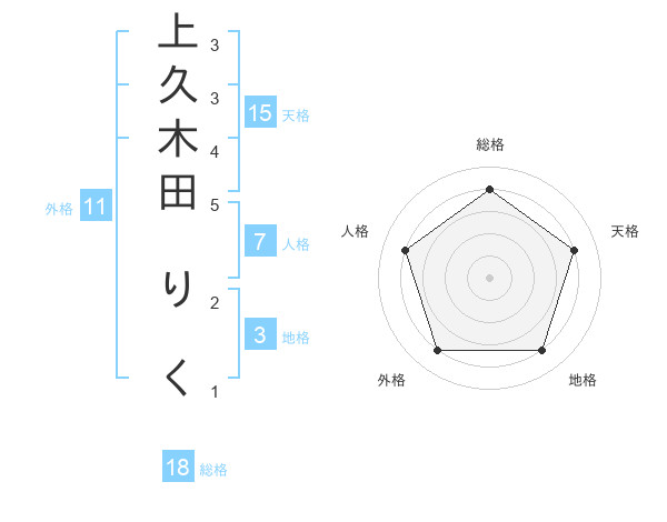 上久木田 りくさんを姓名の画数から五運を鑑定