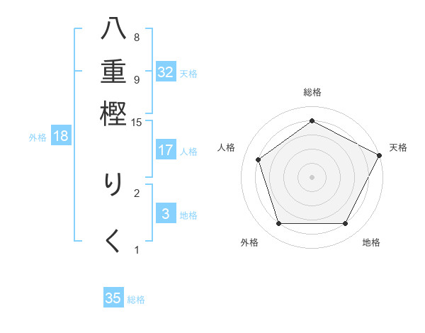 八重樫 りくさんを姓名の画数から五運を鑑定
