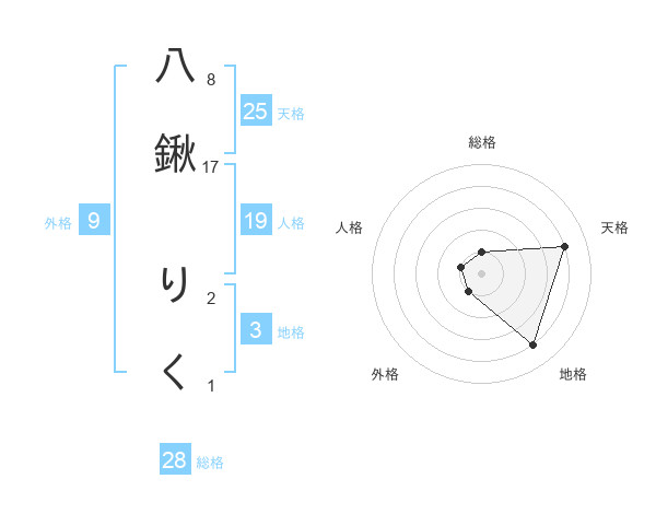 八鍬 りくさんの総格は28画の1点!