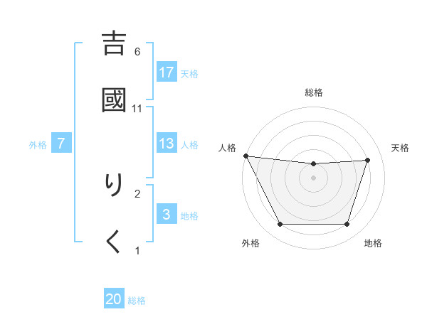 家系が持つ宿命的な運勢を表します。祖先から受け継いだ苗字ですので自分の力が及びません。家柄を象徴します。
