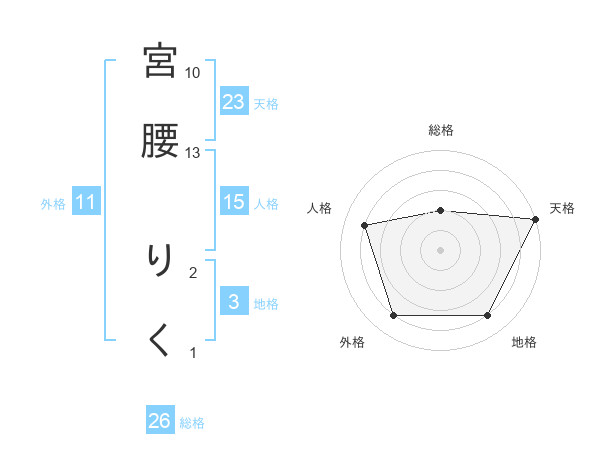 宮腰 りくさんを姓名の画数から五運を鑑定