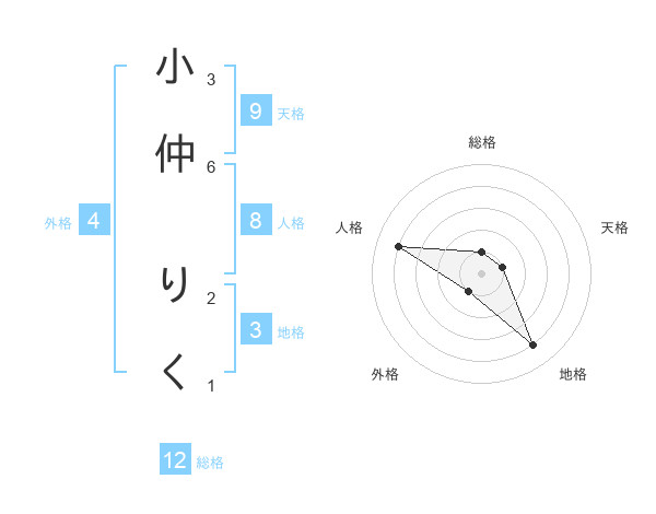 小仲 りくさんの地格は3画の4点!