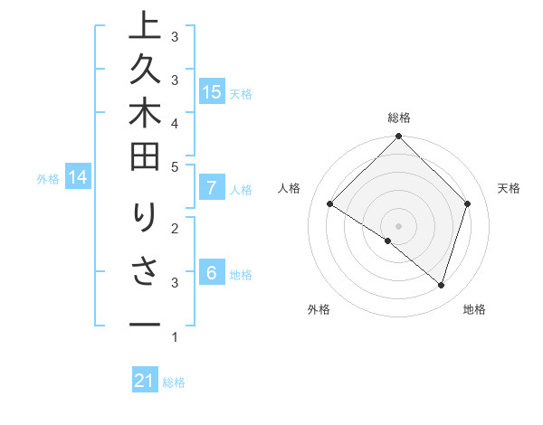 上久木田 りさ一さんの総格は21画の5点!