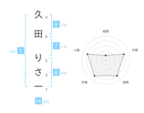 久田 りさ一さんを姓名の画数から五運を鑑定
