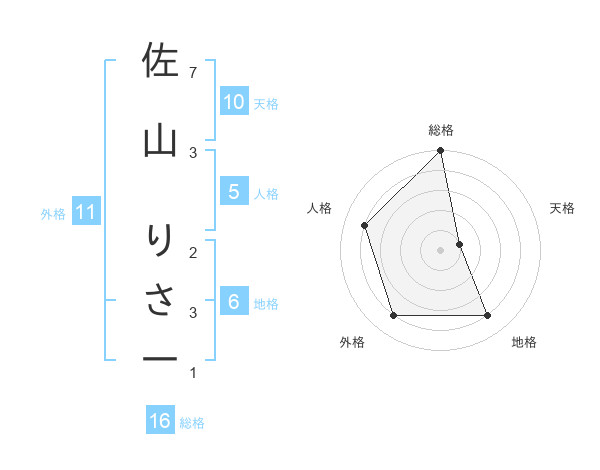 佐山 りさ一さんを姓名の画数から五運を鑑定