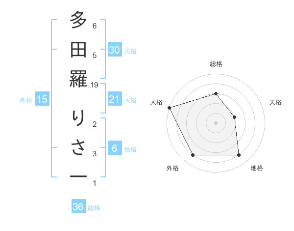 多田羅 りさ一さんの地格は6画の4点