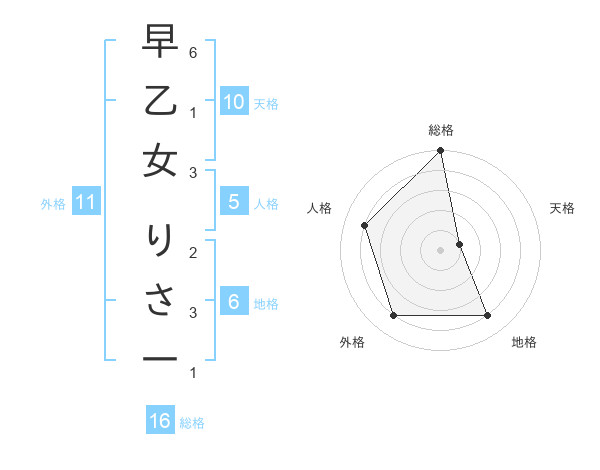 早乙女 りさ一さんの総格は16画の5点!
