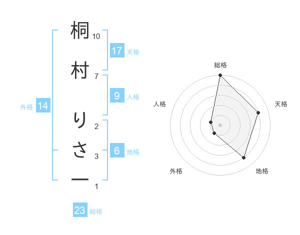 桐村 りさ一さんの総格は23画の5点!