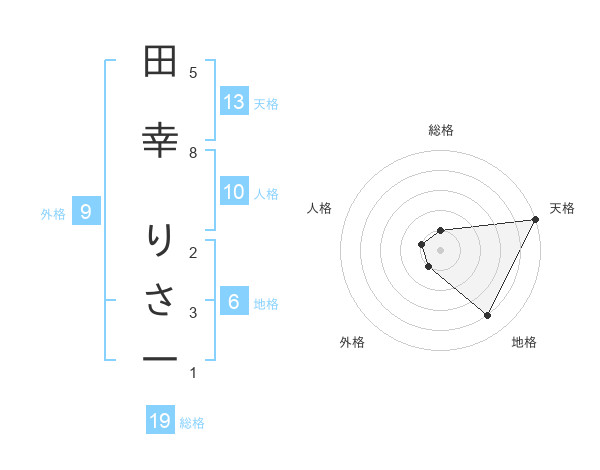 田幸 りさ一さんを姓名の画数から五運を鑑定