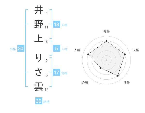 井野上 りさ雲さんを姓名の画数から五運を鑑定