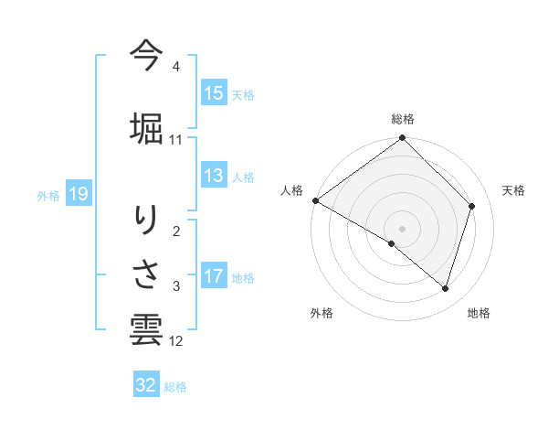 今堀 りさ雲さんを姓名の画数から五運を鑑定