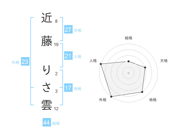 近藤 りさ雲さんを姓名の画数から五運を鑑定