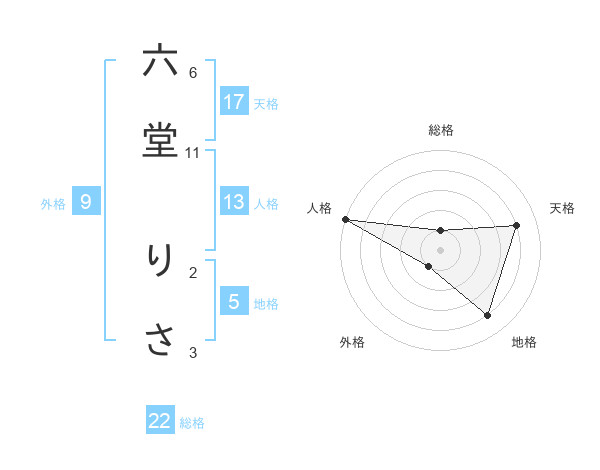 六堂 りささんの総格は22画の1点!