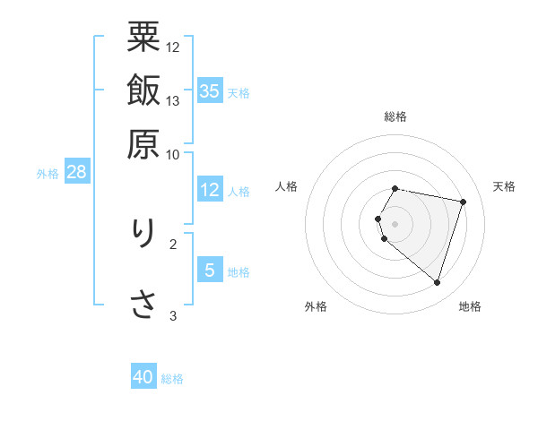 粟飯原 りささんを姓名の画数から五運を鑑定