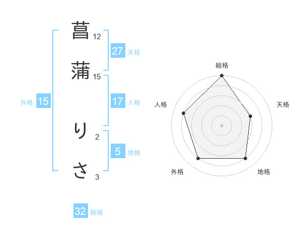 菖蒲 りささんを姓名の画数から五運を鑑定