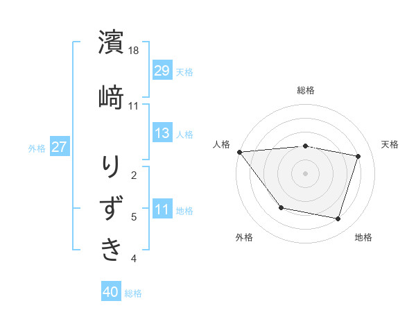 濱﨑 りずきさんの地格は11画の4点!
