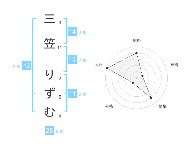 三笠 りずむさんの総格は25画の4点!