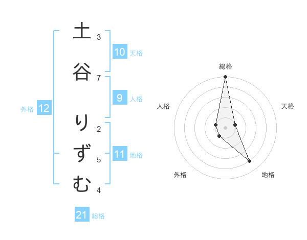 土谷 りずむさんを姓名の画数から五運を鑑定