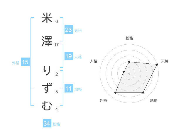 米澤 りずむさんの天格は23画の5点