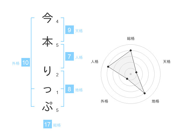 今本 りっぷさんを姓名の画数から五運を鑑定