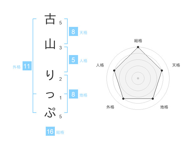 古山 りっぷさんを姓名の画数から五運を鑑定