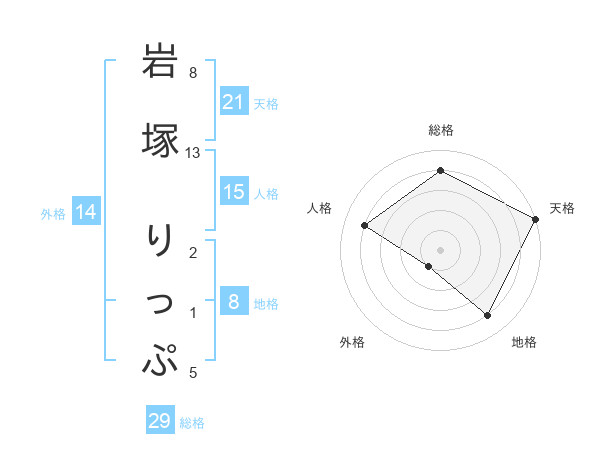 岩塚 りっぷさんの天格は21画の5点!