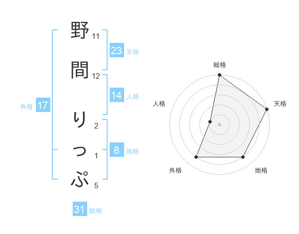 野間 りっぷさんを姓名の画数から五運を鑑定
