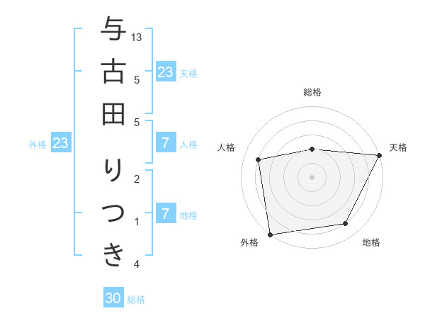 与古田 りつきさんを姓名の画数から五運を鑑定