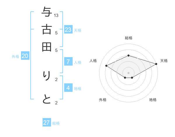与古田 りとさんの天格は23画の5点!