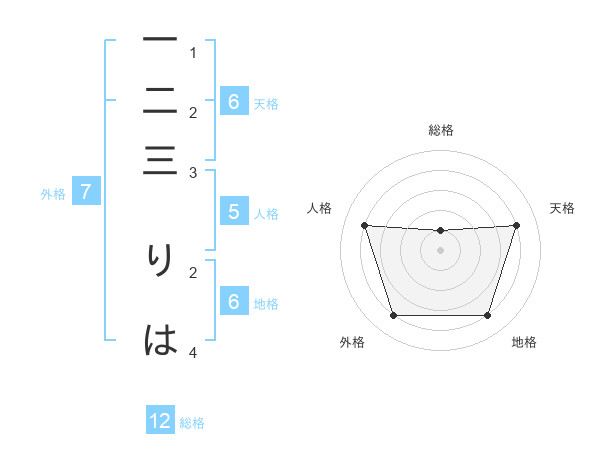 一二三 りはさんの地格は6画の4点!