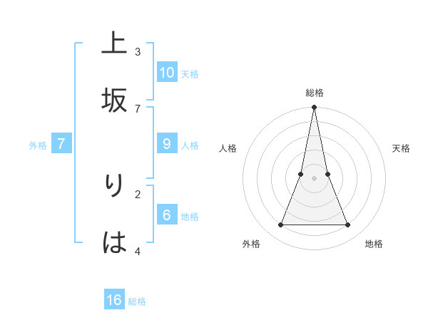 上坂 りはさんの総格は16画の5点!