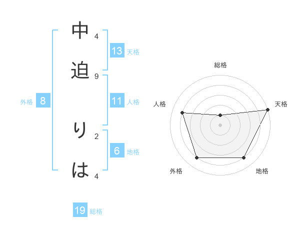 中迫 りはさんの天格は13画の5点!