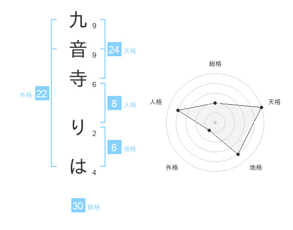 九音寺 りはさんを姓名の画数から五運を鑑定
