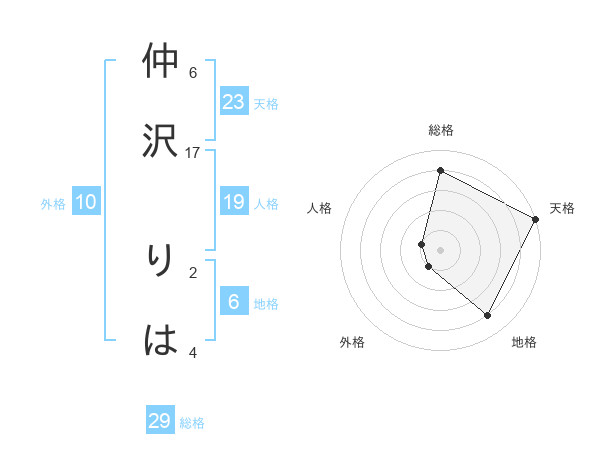 仲沢 りはさんを姓名の画数から五運を鑑定
