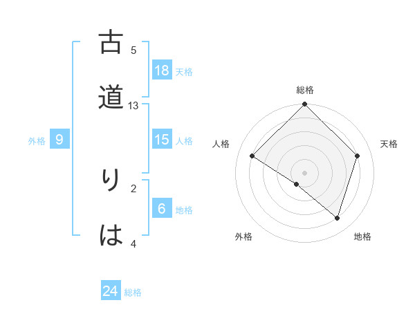 古道 りはさんの総格は24画の5点!