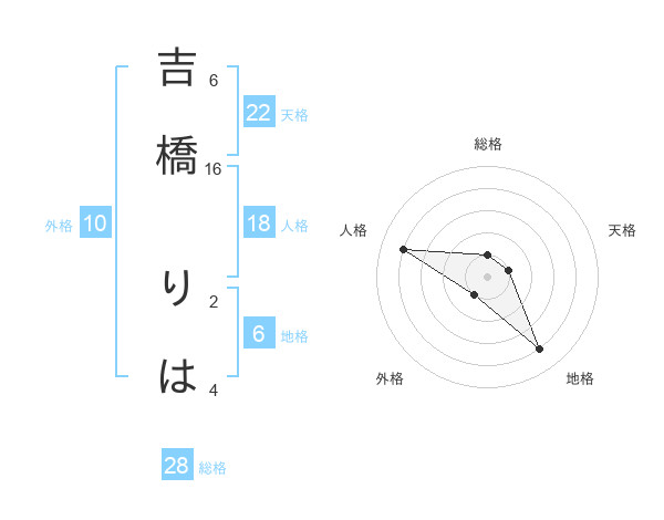 吉橋 りはさんの総格は28画の1点!