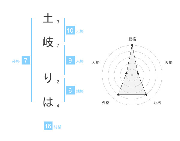 土岐 りはさんの総格は16画の5点!