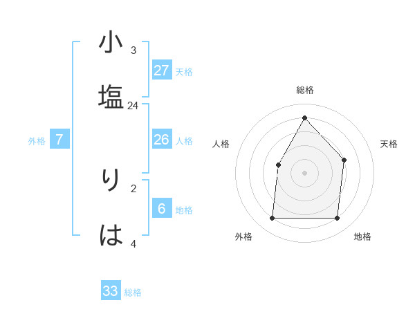 小塩 りはさんの天格は27画の3点!