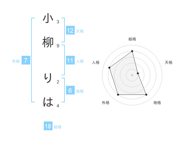 小柳 りはさんの天格は12画の1点!