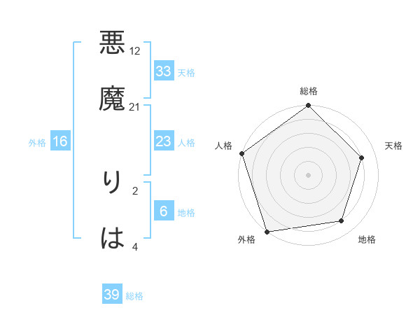 悪魔 りはさんの外格は16画の5点!