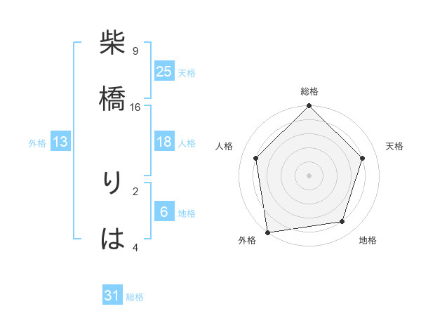 柴橋 りはさんを姓名の画数から五運を鑑定