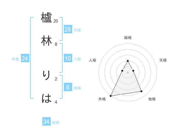 櫨林 りはさんを姓名の画数から五運を鑑定
