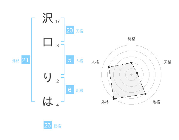 沢口 りはさんの総格は26画の2点!