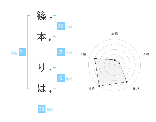 篠本 りはさんの外格は21画の5点!